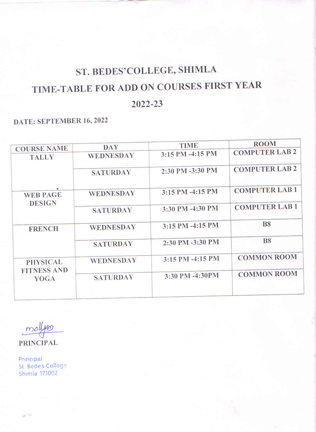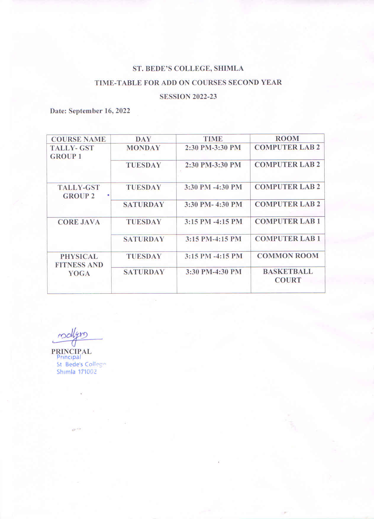 Tally with GST,Advanced French,Tally Ace,Internet Technology and web Page Design ,Dance, ,Travel and Tourism Web Designing ,Tally Essential Level 2,French, Physical Fitness and Yoga ,Biodiversity ,Research Methodology,Core Java , Tally Essential Level 3,German Language, Nutrition and Health Education,Python Programming, Basic Statistics and Econometrics, Art The |