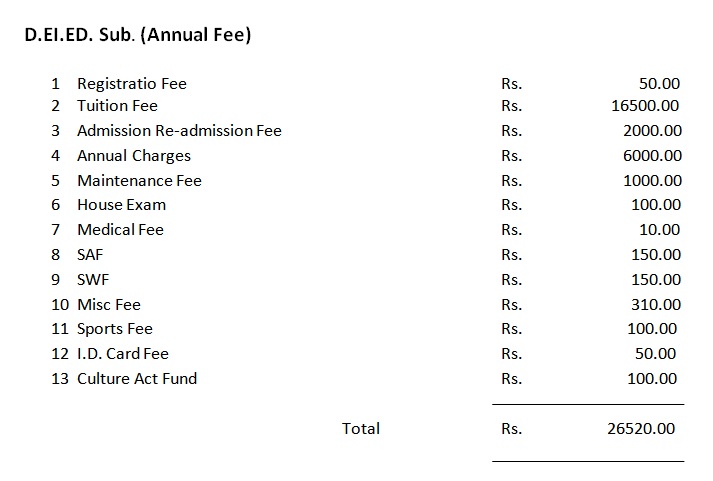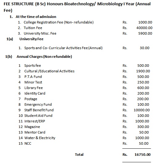 B.Sc Honours 1st Year (Annual Fee)