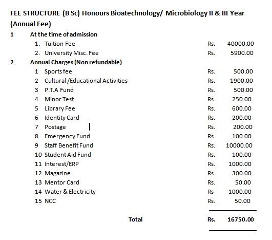 B.Sc Honours 2nd/3rd Year (Annual Fee) |