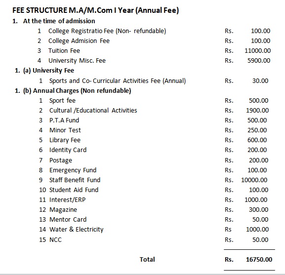 MA/M.Com 1st Year (Annual Fee)