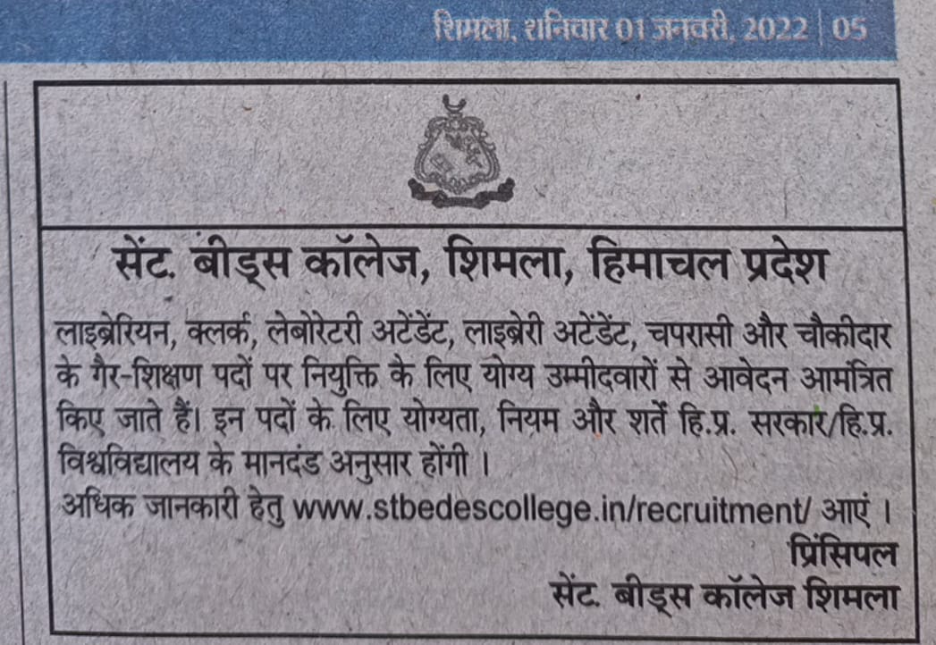 Newspaper advertisement in Dainik Bhaskar Dated 01-01-2022 |
